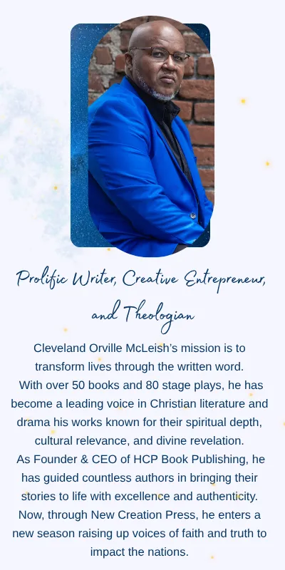 Join us for an unforgettable evening as we celebrate the impact, legacy, and literary journey of Cleveland Orville McLeish, M.T.S. author, playwright, theologian, and visionary publisher.